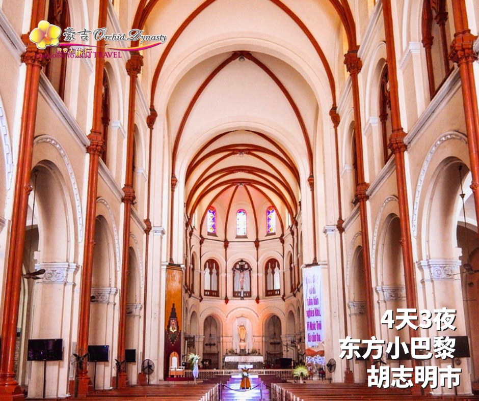 抵达新山-国际机场后,由专业导游迎接 (自费)午餐后前往市内观光:百年历史的红教堂(圣母大教堂),法式建筑 的邮政大楼和市政厅等旅游景点。越南地标-滨城市场,此市场的规模很大,是游客购物的绝佳场所.晚餐於当地餐馆后入住酒店。